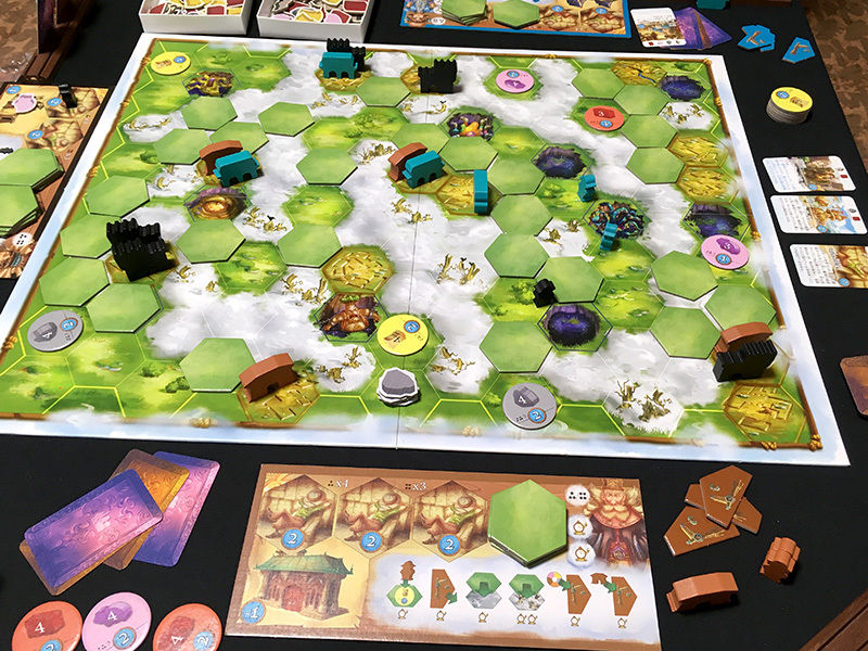 ルールはシンプルでアクションも少ないが、プレイ感は重め。3人で1時間程度。