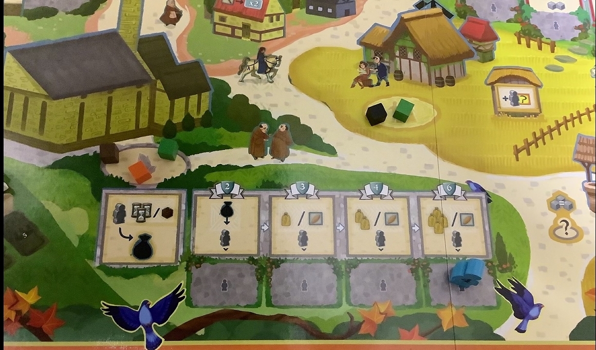ミサというターン終了後に黒い袋からワーカーを引き出し、小麦を寄付して地位を上げていきます。ここの場所によって最終得点が変わってきます。