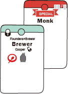 モンクはワイルド・カードで,生産チェーンのどれかのカードの代わりに使えます。ただし,生産チェーンのトップ(重ねるときいちばん上)のカードにすることはできません。モンクとそれに重ねるカードを同時に出します。