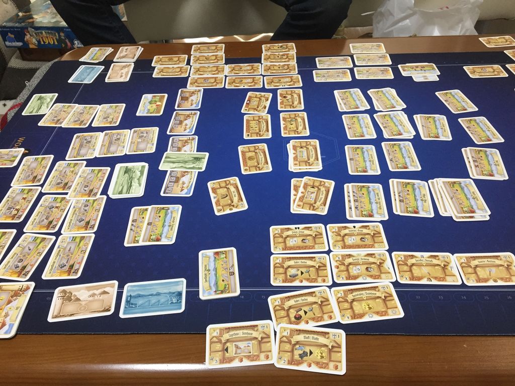 それを受けての2回目はインストは10分程度でできたのですが、多少まだ疑問が残っているところもあります(原文にあたる必要があるのですが、ちょっと大変)とはいえ、遊べる状態なので、やったのですが、山札2回目で押し込まれた感じで負けました。