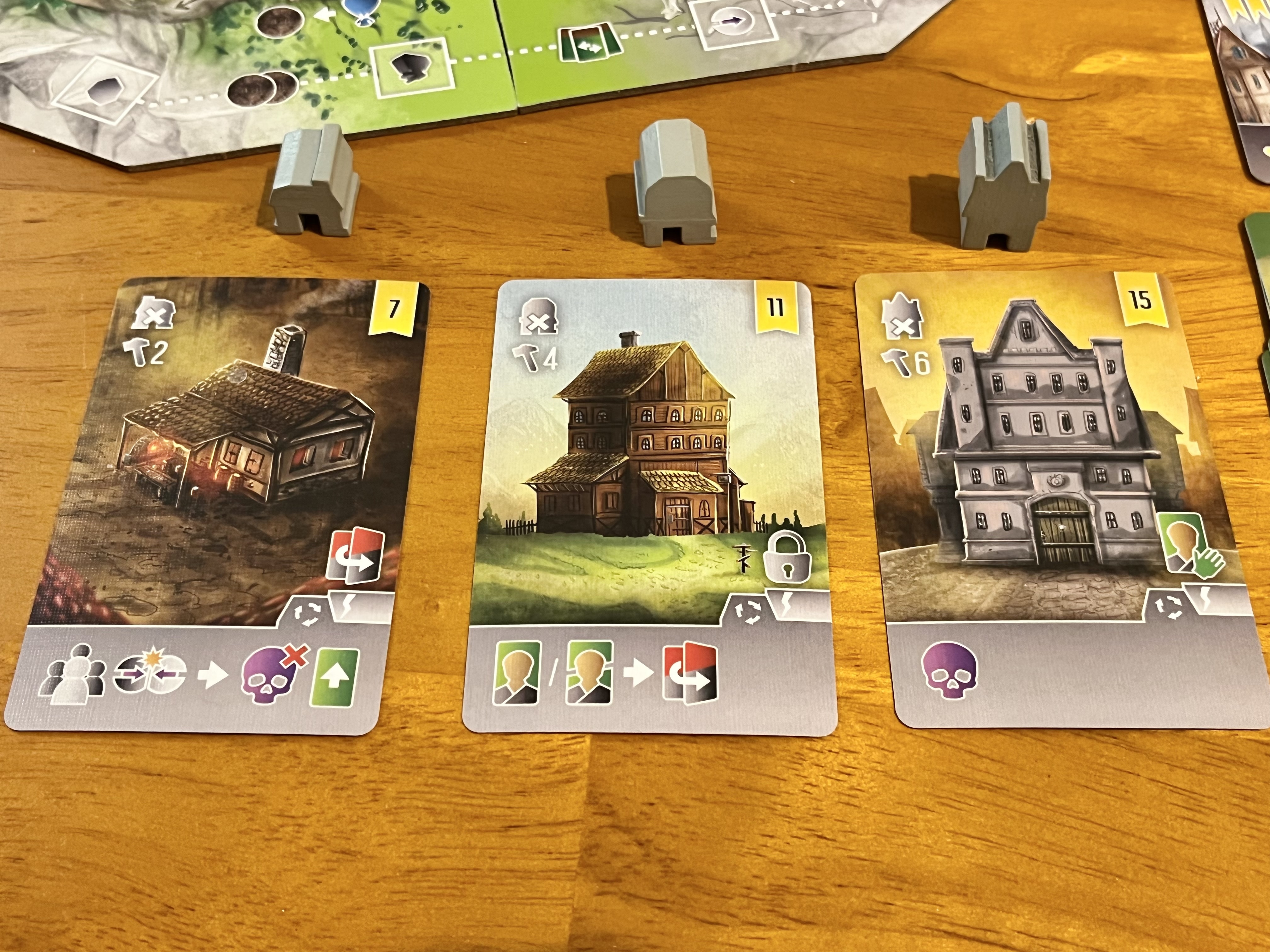 既存の建物コマが個人ボードに戻ってしまいますが、それを差し引いても問題ないくらいの勝利点と強力な常時発動能力が手に入ります。