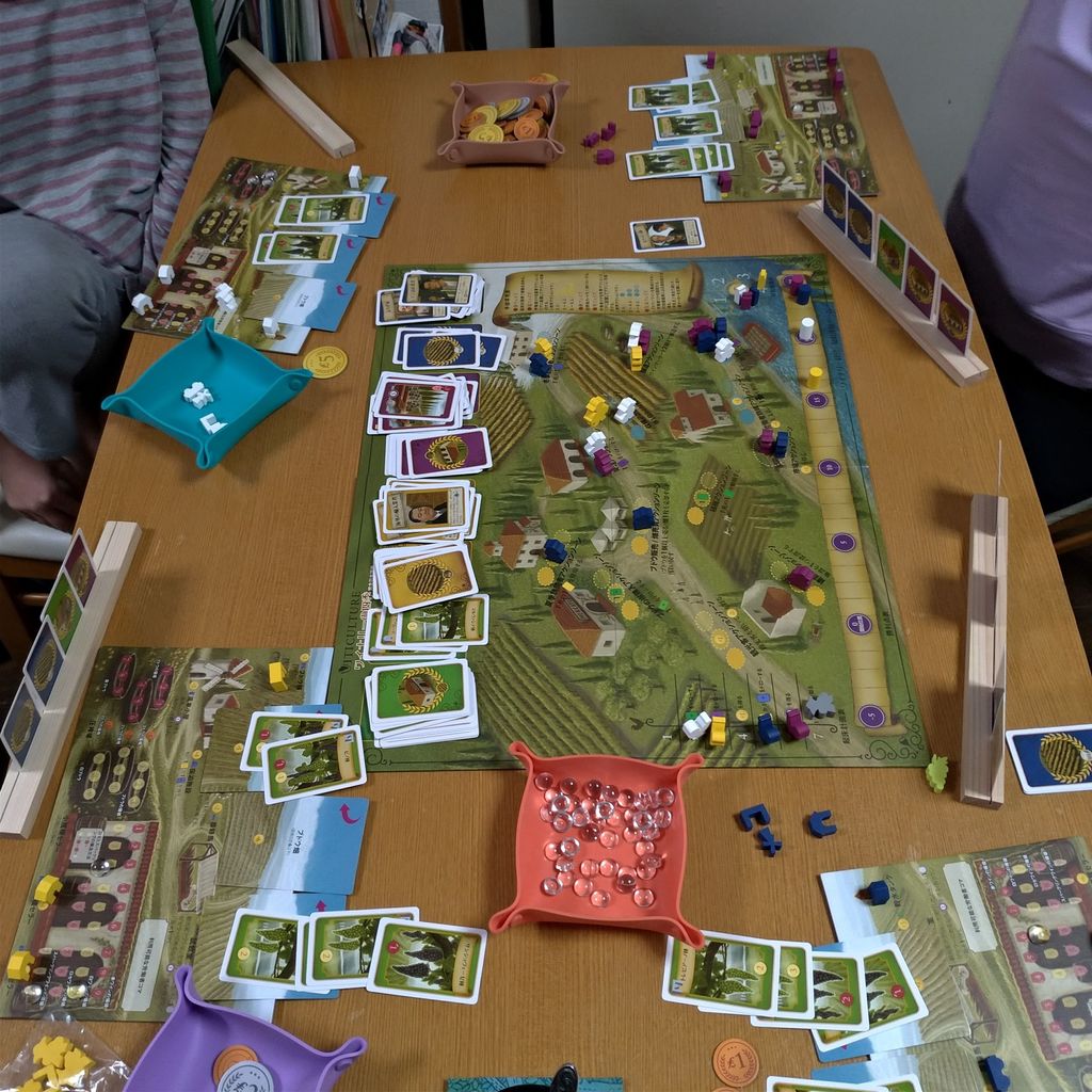 これだけを聞くと地味なゲームなんだろうと思われるかもしれません。実際、私もプレイするまでは、そう思っていました。でも、一度プレイしてみたら、とても面白かったです。ワーカープレイスメントのゲームがあまり好きでない次女(小5)も、このボードゲームはプレイしたがります(アグリコラは駄目ですが)。