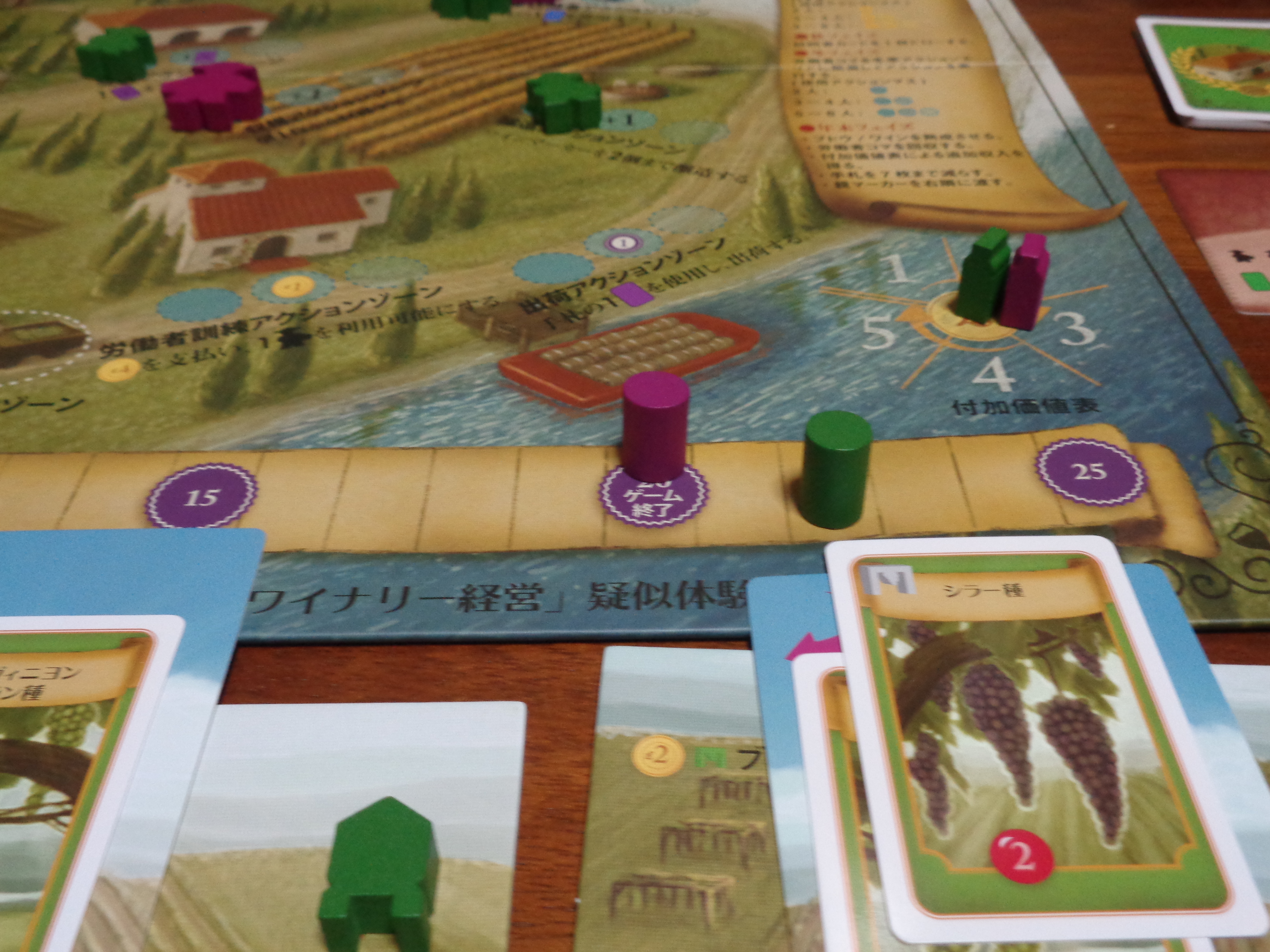点数はうまくできたが、それ以外の点、例えば、試飲室を建てて、観光客アクションでプラス1VPや、ブドウを