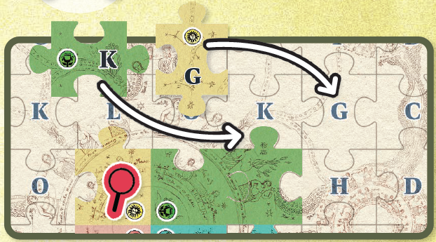 知識共有トークンが1つ以上ある場合は、それらを使用して、ボードにパズルピースを配置してその知識を共有する必要があります。