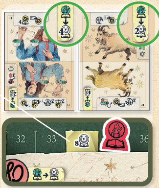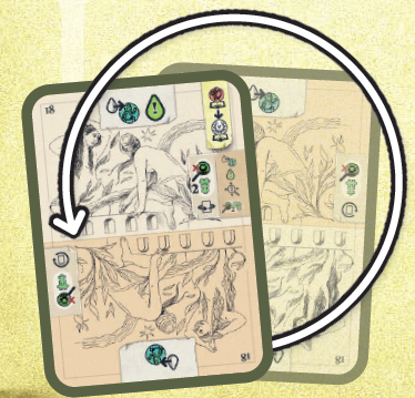 あなたのターンで、本のアクティブなダブルページを別のページに変更する必要があります(最初のターンは例外で、どのダブルページから始めるかを自由に選択できます)。時間を節約するために、他のプレイヤーのターン中に新しいアクティブなダブルページに本を開いておくと、自分のターンになったときにすぐにアクションを開始できます。