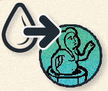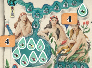 4) 汚れた水滴を浴場セクションの第1プールにランダムに7つ、右側の噴水の下の汚水スペースに1つ配置します。