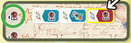ある分野で十分な知識を獲得したら、その知識を共有し、手稿が表すパズルピースを追加します。すべてのプレイヤーはその知識にアクセスでき、本のカードを回転させたり反転させたりすることで表される手稿を解読するのに役立ちます。手稿を解読すると、より良いアクションとゲーム終了時のスコアリングにアクセスできるため、それがゲームの主な焦点となるはずです。