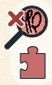 2) 中央のパズルピースをボードのパズル領域の中央に任意の向きで置き、他のすべてのパズルピースを文字面を上にしてボードの横に置きます。