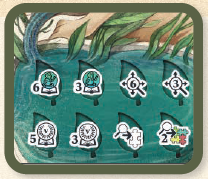 12) あなたの色の残りのトークンを本の近くに置いて、研究、葉、星、水滴、テキスト(翻訳されていない面を上にして)の個人サプライを作成します。