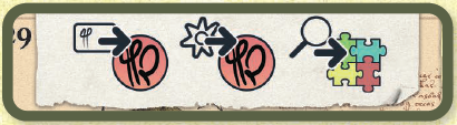 ページが最終ステップに達していない限り、右下のセクションに進行条件が記載されています。この条件では、メインボードのパズルの特定の場所から1つ以上のあなたの研究トークンを、あなたの個人サプライに戻す必要があります。