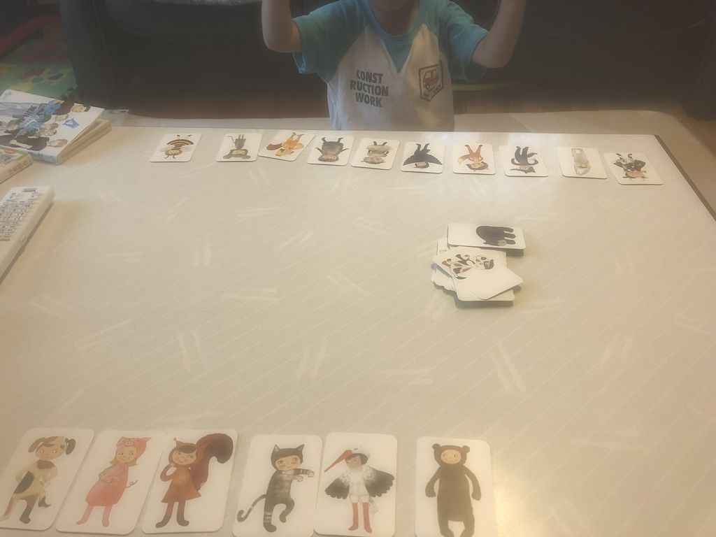 今回、プレイしてみて思ったのは、子どもが動物にコスプレしているカードと動物カードについて、3歳児は一致することができないと思いましたが、全くの杞憂でした。