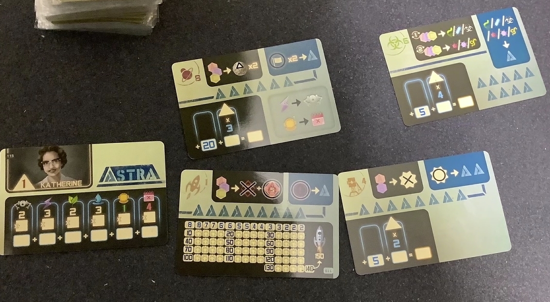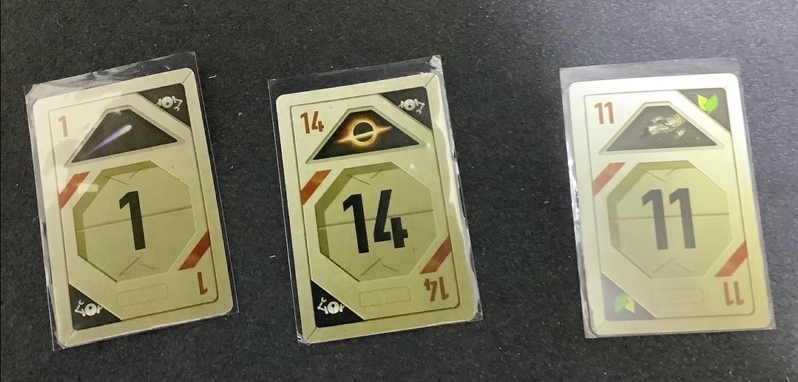 そして選ばれなかったカードはASTRAの方にわたります。ASTERカードが出たら妨害効果が発動して、山が尽きてしまったら残ったプレイヤーが選んだカードで山を作り、ASTERカードを混ぜて再び山から3枚引いて進めます。