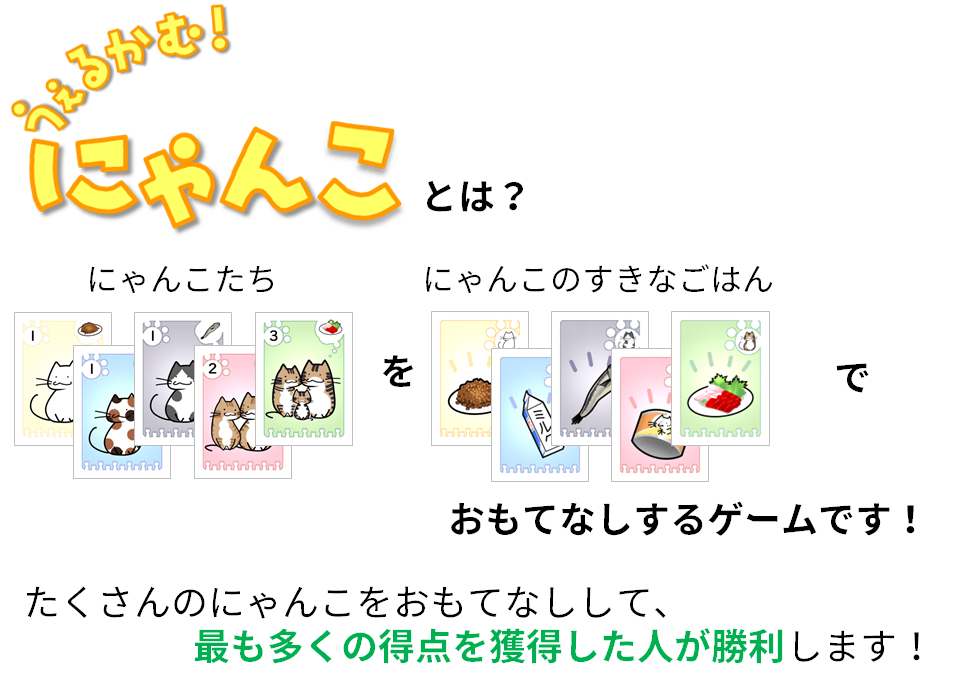 これをにゃんこカードの基本点に加え、最も得点の高いプレイヤーが勝者となります。