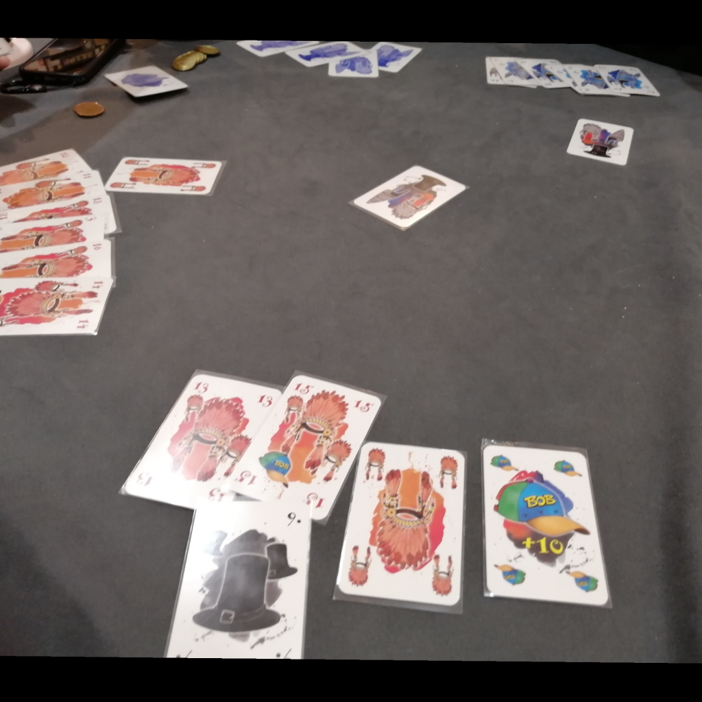 トリック中に1枚以上のボブの帽子が描かれたカード(各色の14〜15の計6枚)がプレイされていたら、トリックを獲得したプレイヤーらボブの帽子を受け取ります。