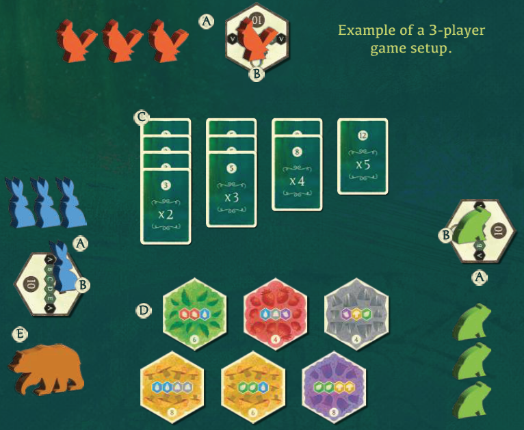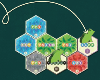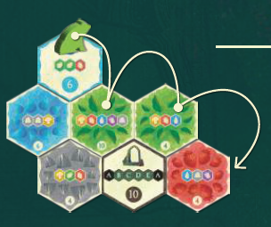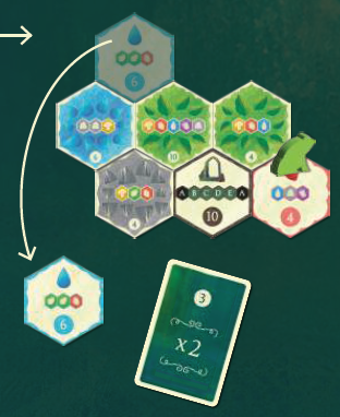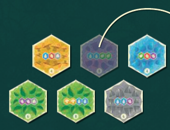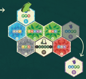 バッグからランダムに森タイルを取り出し、6枚になるまでマーケットに置きます(最初のプレイヤーの最初のターンではこのステップをスキップします)。各ターンの開始時に、利用可能なタイルが6枚である必要があります。