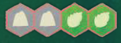 A面: 森タイル タイルの色を示します。また、裏面にあるパスと、このパスをたどった場合に獲得できる勝利ポイントに関する情報も表示されます。この面が上になっている限り、それは森タイルと呼ばれます。 |