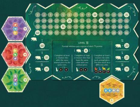 · 各動物コマで少なくとも1つのミッションタイルを完了します。そのタイルは別の色でなければなりません。
