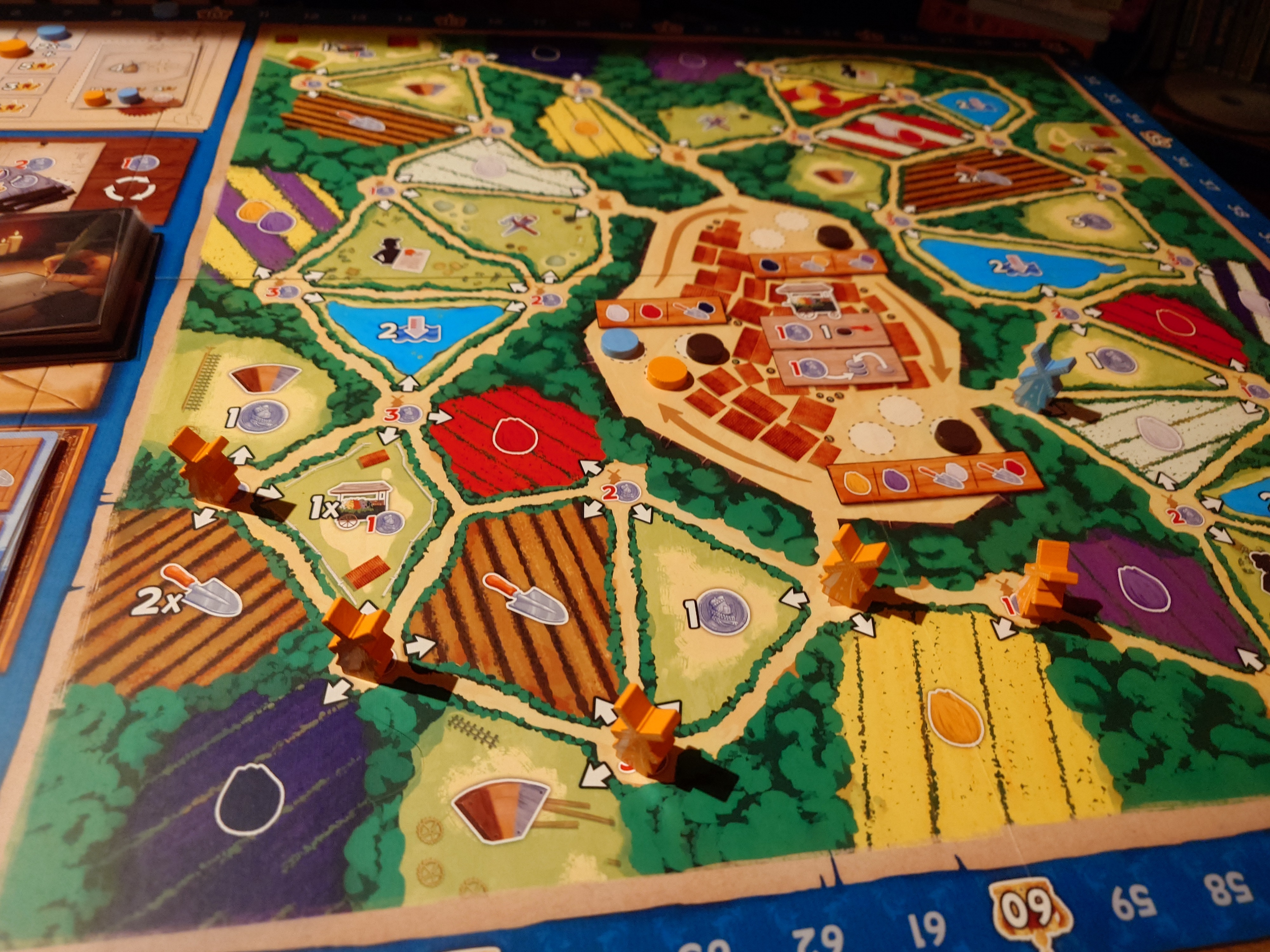 アクションはカードや貿易、植え付けや市場等色々、得点方法も色々ある。ここが恐らくダニ・ガルシアさんらしいところで、システムやギミックが全然違うのに不思議とバルセロナを思わせるプレイ感を感じる。