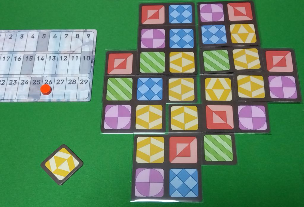 基本的なルールはそのままにちょっとした変更(持ち時間とか得点化した手番のカード回転とか置いたカードは直後の重ね置き不可とか)ができます。見える位置にタイルを置くだけ。個人的には配置後180度回転がわけわからなくなって好き。