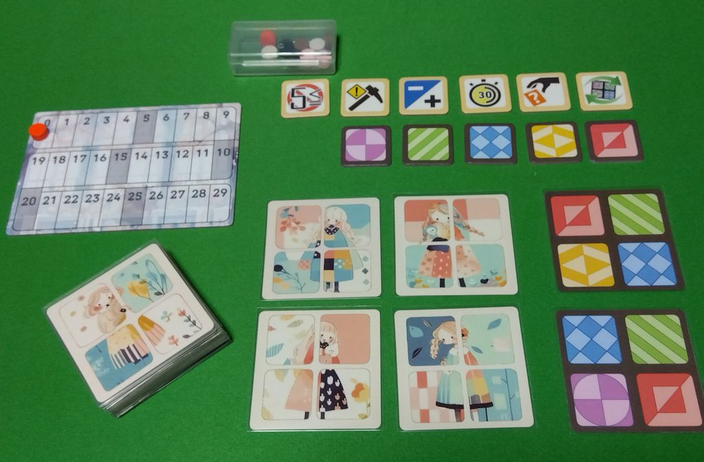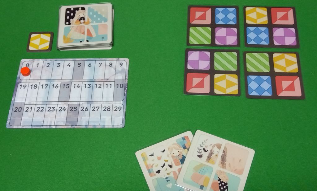テーマ:「妖精世界」と「現実世界」を繋ぐ小窓を繋いで要請を助けようというフレーバー。1枚に4つのカラーの「小窓」が描かれているので、上手くつなぐことで得点を稼いでいきます。