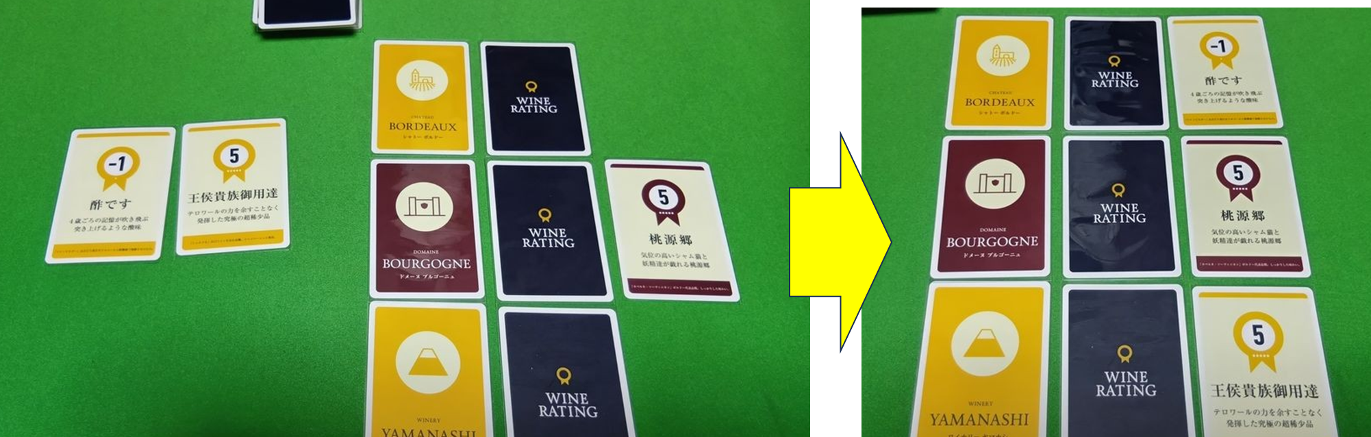 ①裏向きの評価カードを全て表にして、ワイナリーごとの得点を計算する。