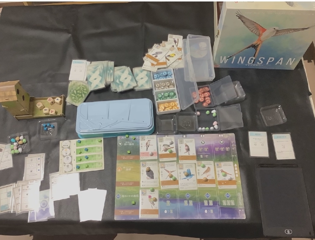 まずカードケースはある。カードを並べる市場とし並べる場として用意したとしても他のボードゲームだと厚紙で置き場して表現していたりする程度でしょう。