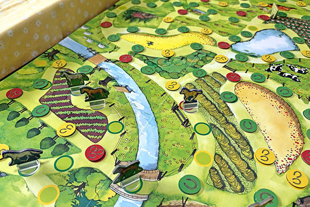 途中にある餌トークンを獲得し、その餌トークンと、馬小屋にあるオート麦トークン(先着順に高い)が得点になる。