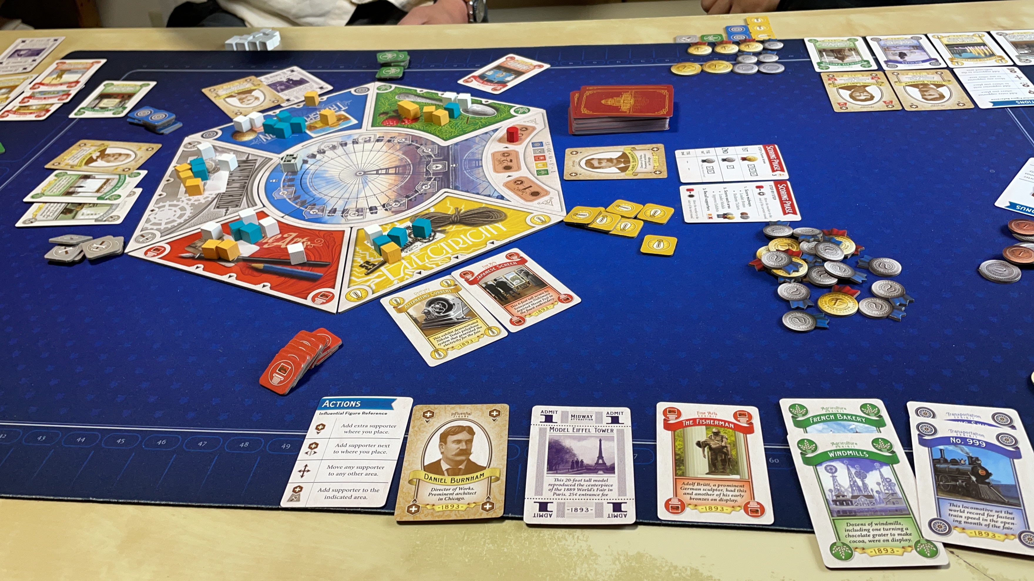 カードを集めて、マジョリティを取って、タイルを集めます。そんなことよりユニークにする必要がないのに、カードがすべてシカゴ万博にちなんでて、そこがすごいっす。