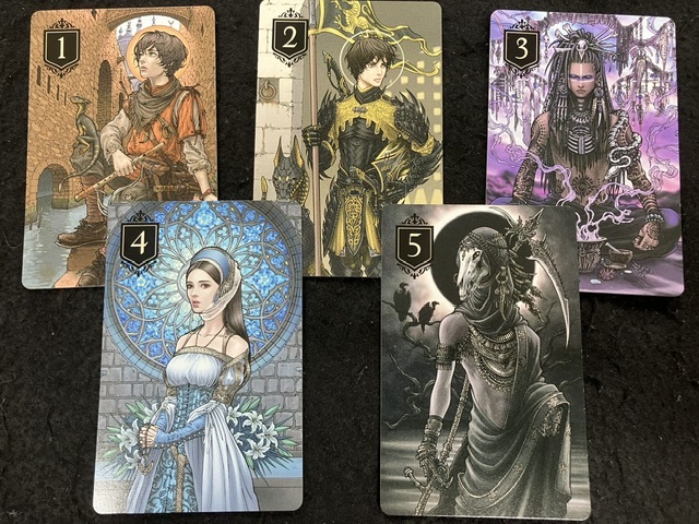 このゲームは、カードが芸術的に美しいため、そこにテキスト欄を入れたくなかったのか、カード上には強さの「数字」以外の情報が全くありません。