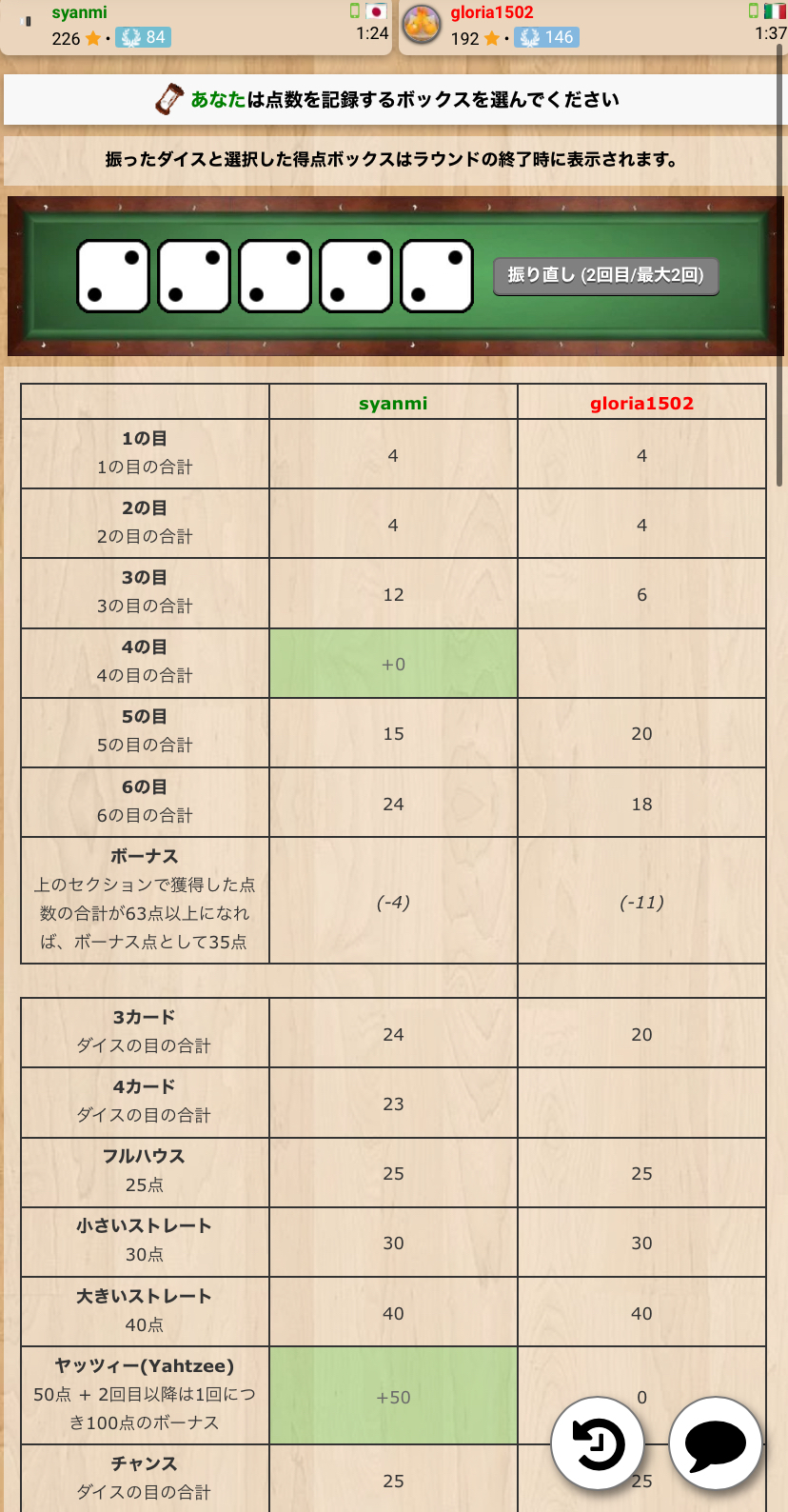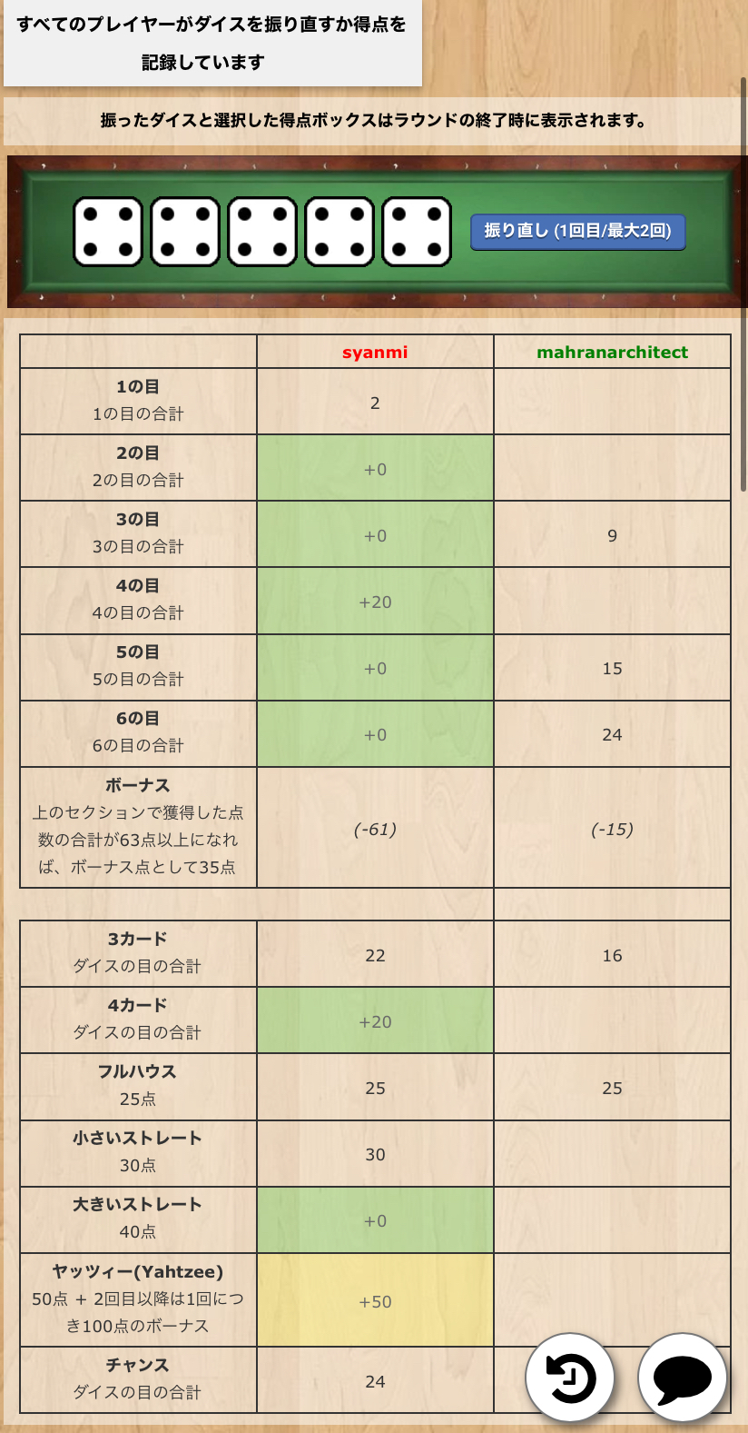 しかし、5カードである『ヤッツィー』を2回出されたら150点になるので、やはり運ゲーなのである!笑