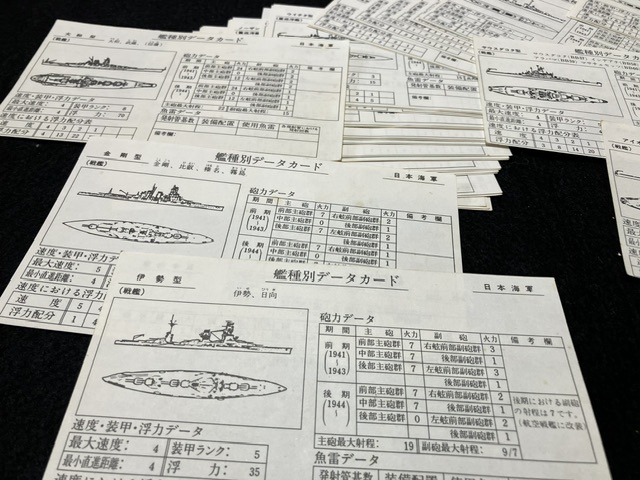 帰って開けると、データカードがぎっしり!(38枚両面で75艦艇のデータが詳細に揃っています。)