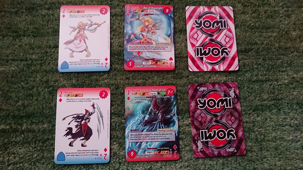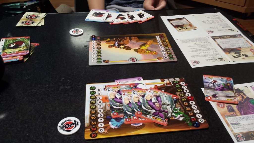 格ゲーと言うと画面と向き合い、コントローラーに握りしめコンボを決めるという印象が強いですが、これはカードを1枚出すことで進めていく格ゲーになります。これなら血豆を作る心配もありません。