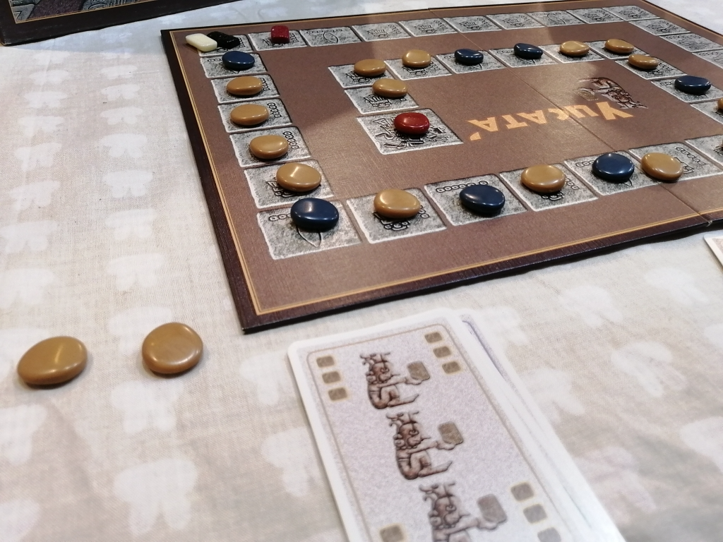 今回は前半に2人で石をよく獲得してたけど、後半に一気にまくられた感じでした。色んな石配置があるらしく、また遊びたい渋いゲームでした。