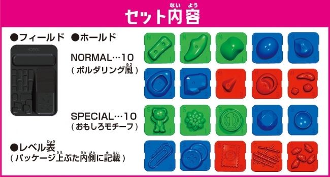 ホールドにはさまざまな模様がありつかみ易さによって色と得点が違います。