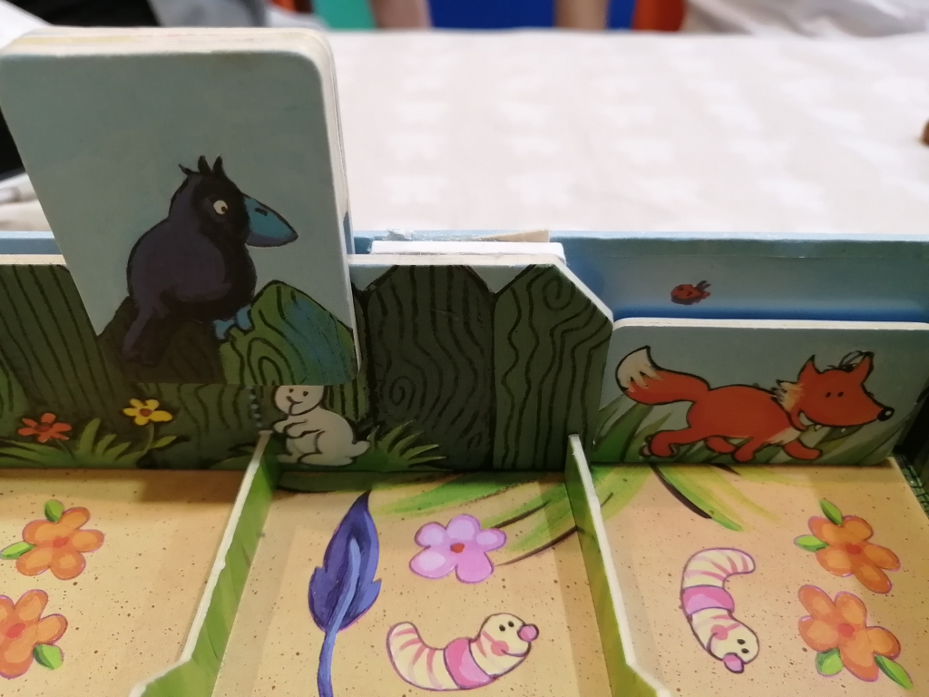 餌のあるマスに止まるか通過すれば餌を獲得。カラスが進み過ぎるとキツネが現れて餌が取れなくなりゲーム終了。餌は天からの贈り物です。