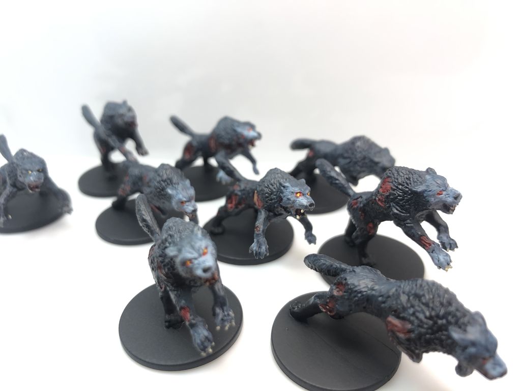 基本セットプレイ済で、いよいよ追加してみました。ゾンビを襲ったオオカミがゾンビになってしまったよというお話。ノーマルオオカミにアボミネーションタイプ(ポスクラス)のオオカミも追加されました。オオカミはアクション3回でめっちゃ素早い。あっと言う間に囲まれてしまいます。群れで襲われるとひとたまりもありません。