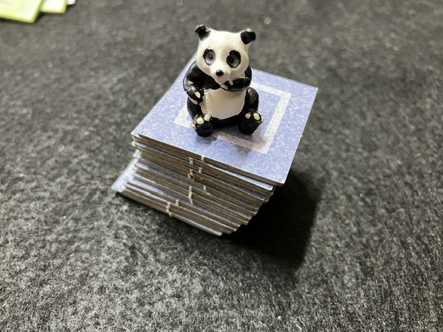 ラウンド終了時のに不足するタイル用にちょこんと乗っけておくパンダフィギュアが付いており、ちょっと作りは雑だけど、見ているうちにとっても可愛くなってきて、雰囲気もかわいいゲームでした。