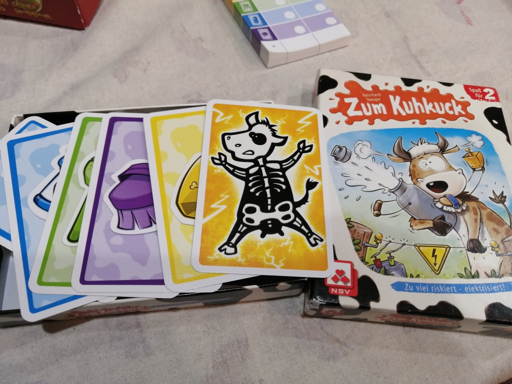 5色のカードと感電カードをしっかりと混ぜて山札にして、手番になったら山札からカードを引くか、手札が5枚以上あるなら得点化するかをします。