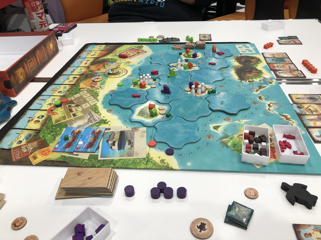 次にわかったことは、性格が悪ければ悪いほどこの島は楽しめるってこと。やりたいアクションに駒を置いといて、手番がきたらその駒を置いているアクションの中からどれかを選んで駒を回収しつつそのアクションをやるんだけど、そのアクションに自分が1番多く駒を置いてる状態じゃないとアクションできないという地獄のような仕様になっている。