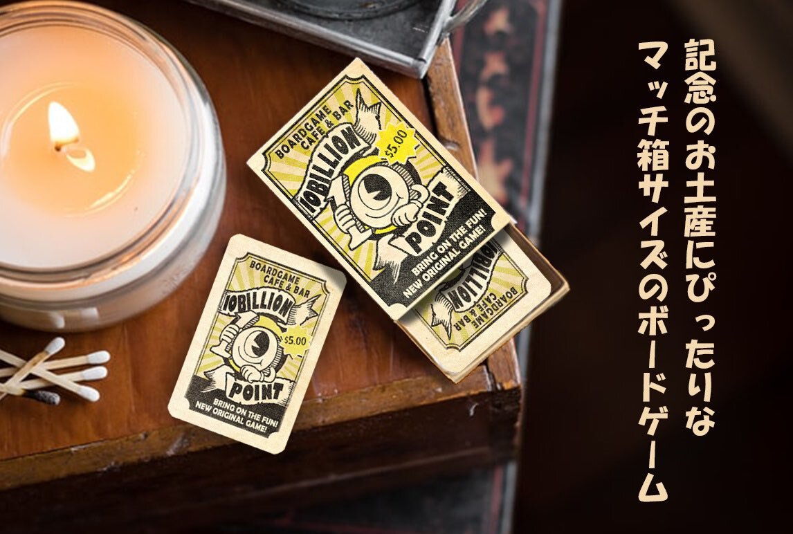 2021年の2月にオープンしたばかりで知名度も低く、テンビリオンポイントに愛着を持ってもらうためのお店のグッズ制作をしたいと思っていた矢先に、マッチ箱で雰囲気の良いデザインのゲーム制作をされている「Sharkyuu Games」のフクチ様にお声がけしていただき、一緒にゲームを作る運びとなりました。