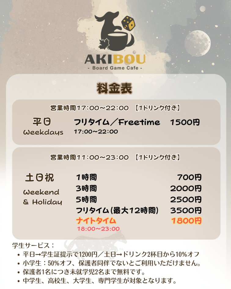 料金/メニュー表
