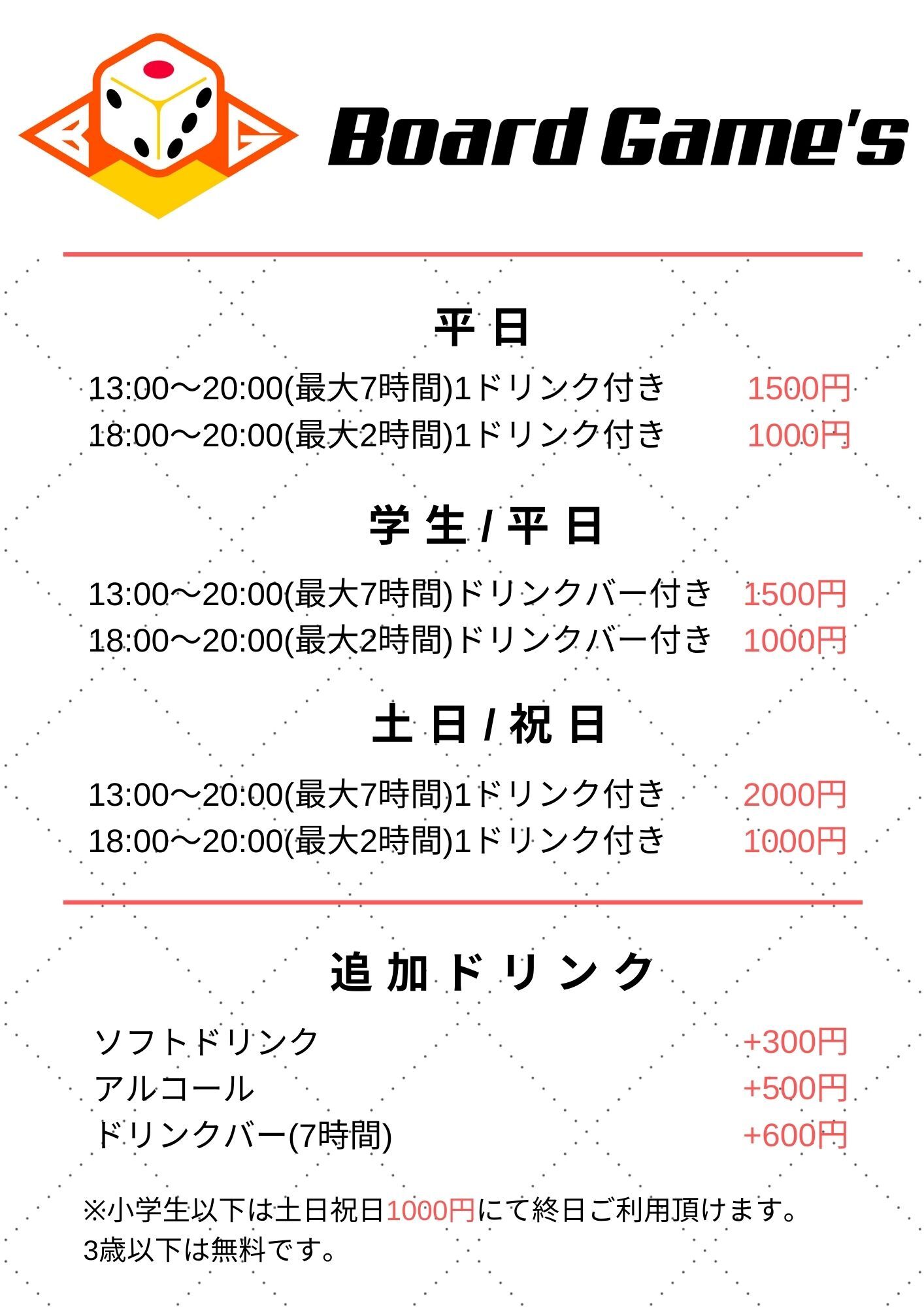土日祝日13:00~20:00(最大7時間) 1ドリンク付き 2000円