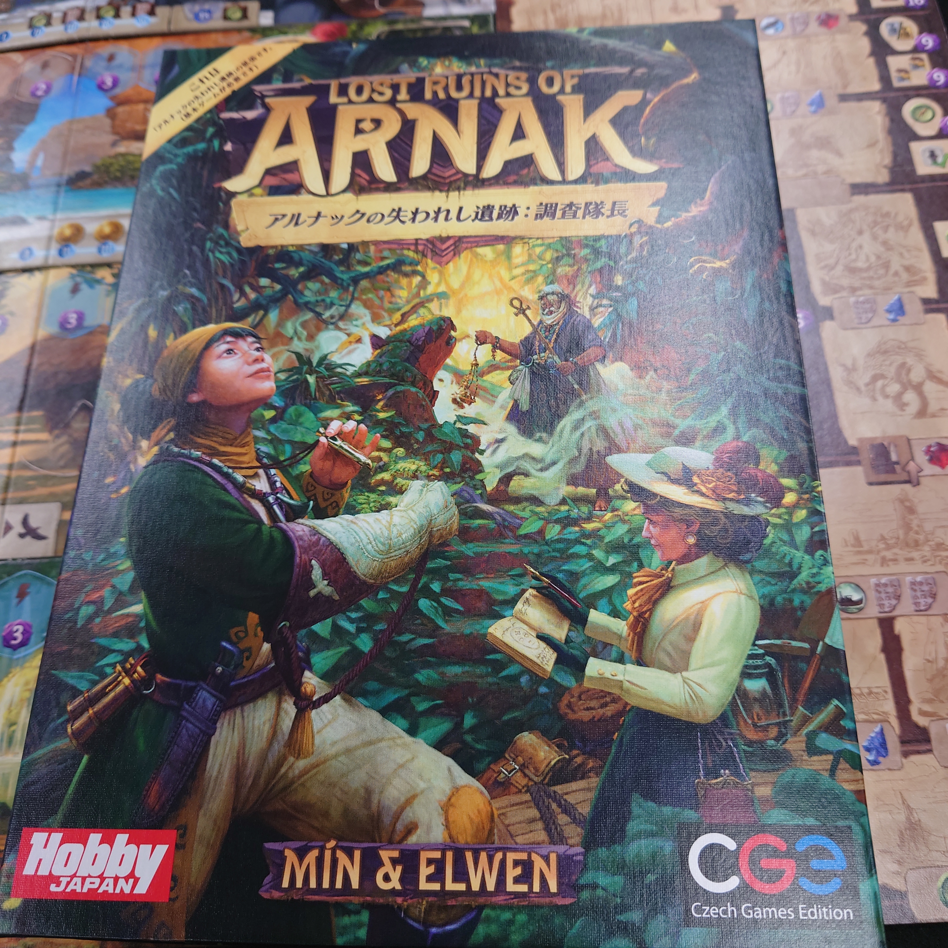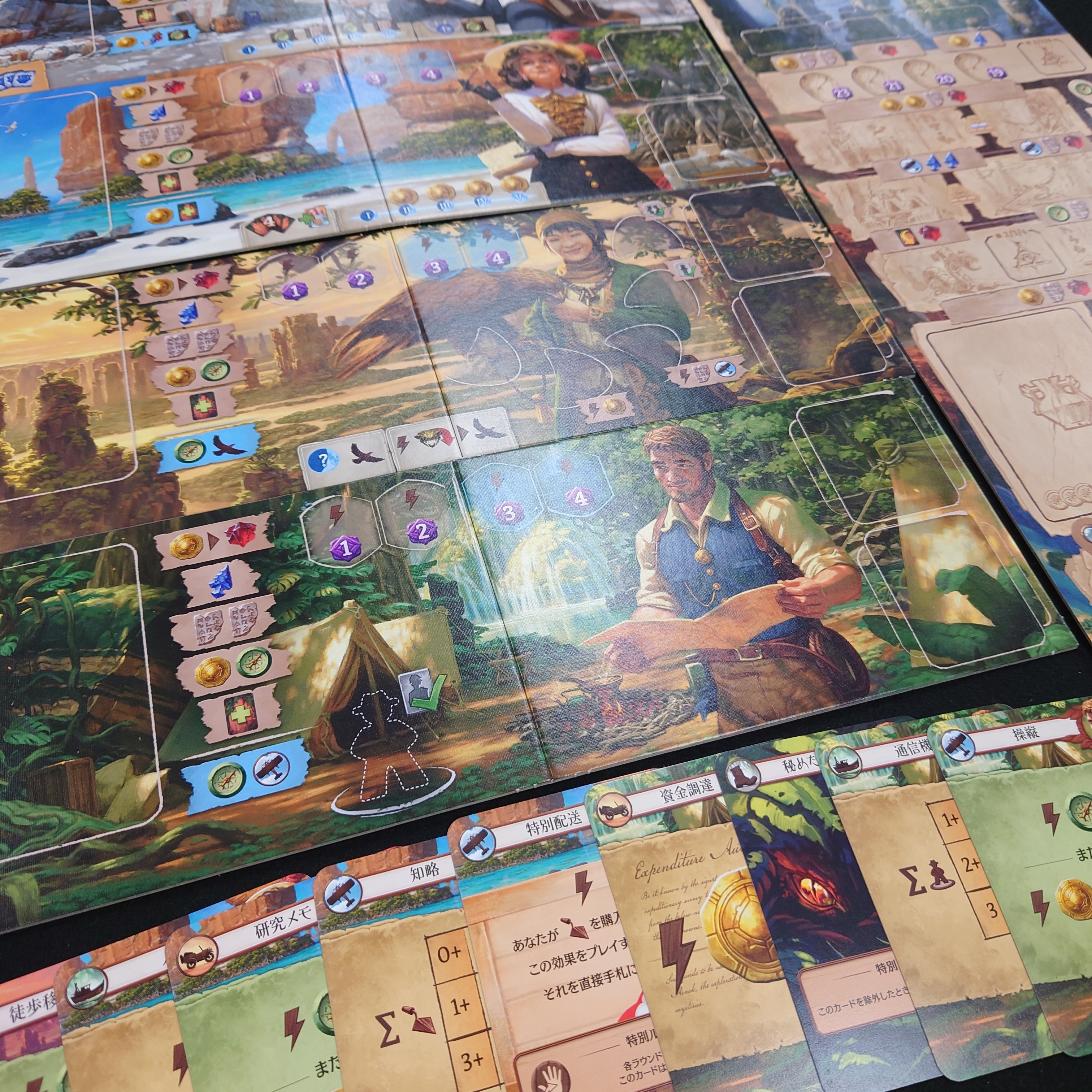 また、アイテムカードや遺物カード、場所タイルと守護者、助手などが追加されることでゲームの戦略に幅が増え、