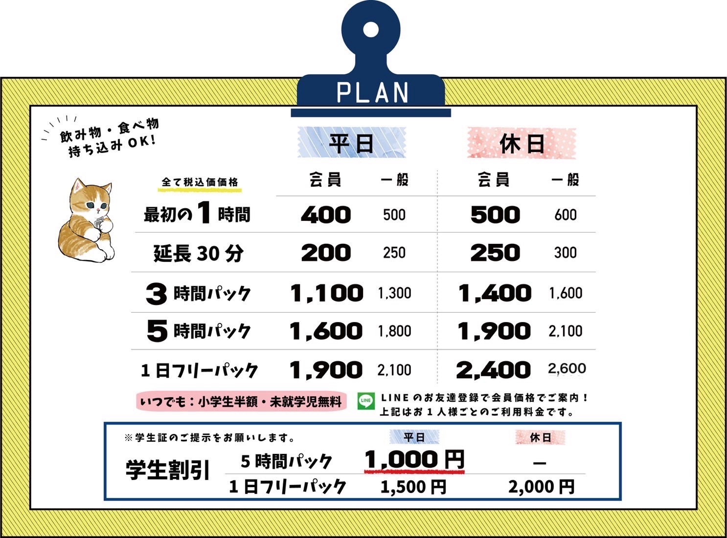 | 平日営業 | 13時00分~22時00分 |