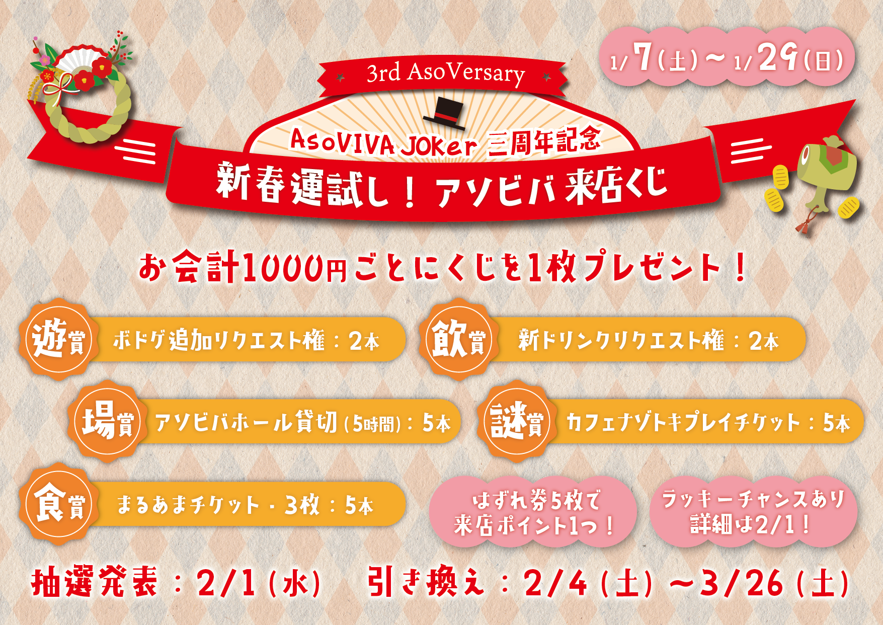 【2022年初営業イベント②】新春運試し!アソビバ来店くじ