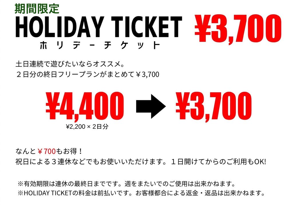 【期間限定】「ホリデーチケット」登場!休日2日のフリープランがお得に!