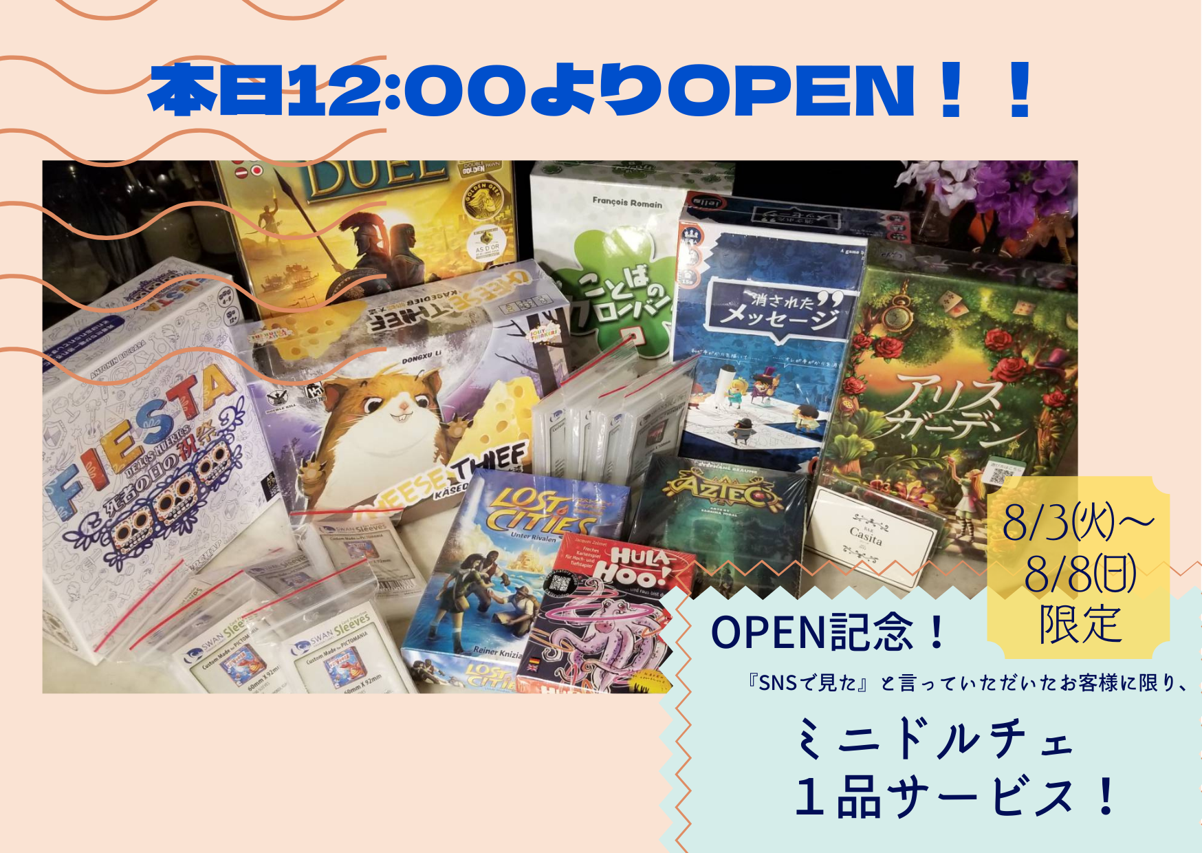 ついに本日12:00~18:00、ボードゲームカフェスタートです!