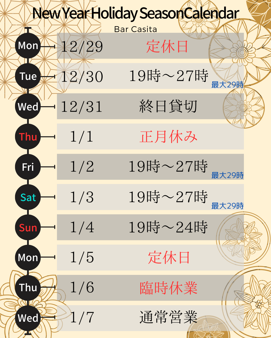 - 約18時間前2025年12月16日 11時13分頃年末年始のカレンダー年末年始の週末は混雑が予想されますのでご予約してからのご来店をオススメしておりますm(__)m忘年会or新年会のご予約も承っておりますのでお気軽にご連絡下さいませ6ページビュー