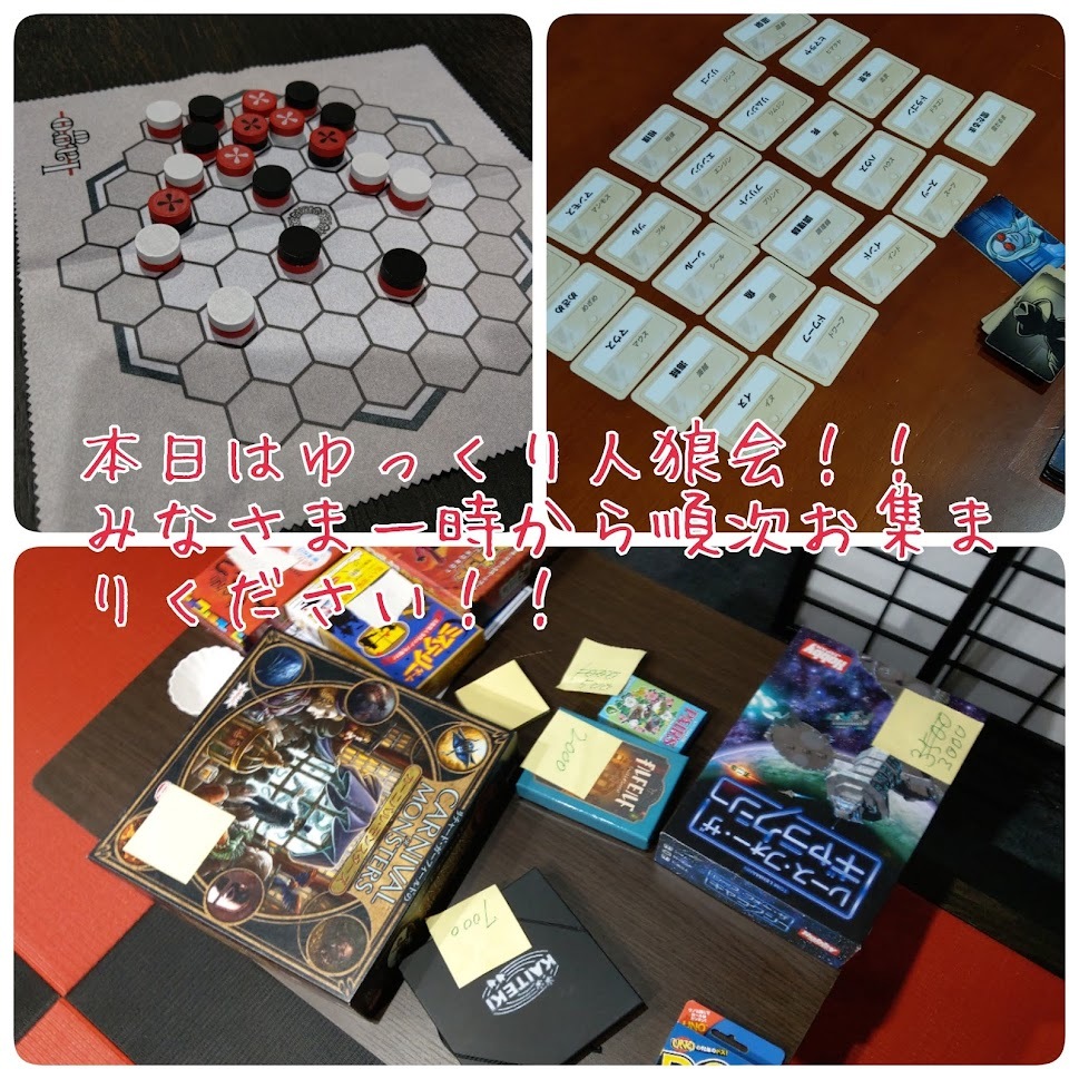 人狼系、ガチ人狼(まったり初心者歓迎)で人狼ゲームや、人が集まるまでボードゲームなども遊びますよ~!!