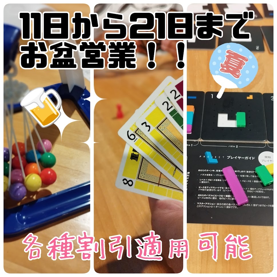 8月11日~15日 13時OPEN (それ以降はご予約で13時OPEN) ~21日までお盆営業